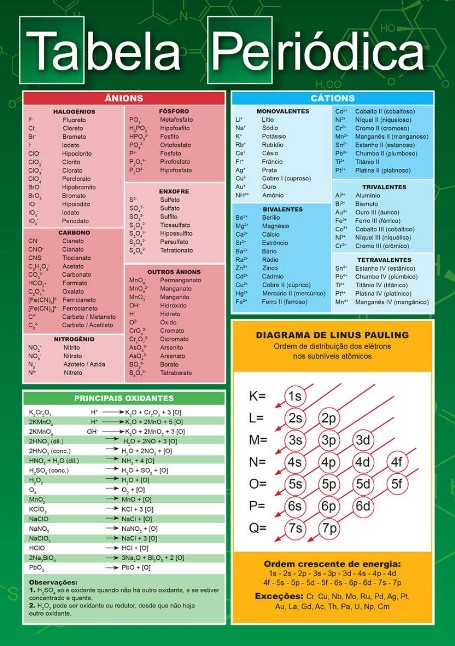 Tabela periódica com informações adicionais.